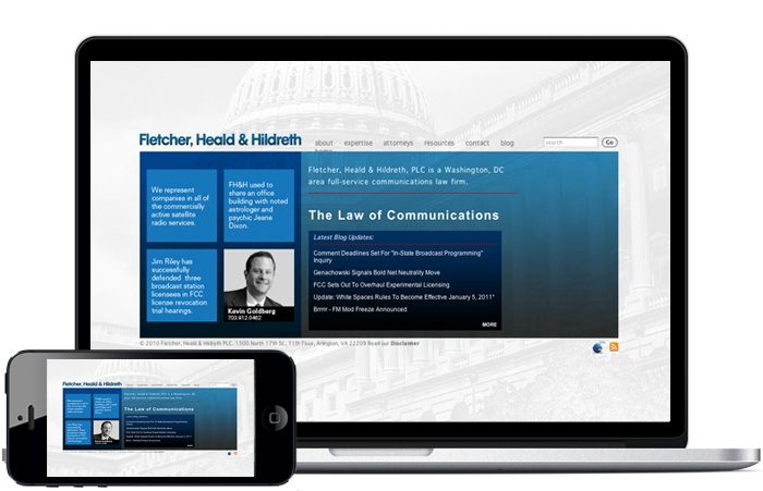 The Ad Agency was hired to design and produce the new Fletcher, Heald & Hildreth logo, brand and website. The new site is slick, attractive, easy to navigate, informative, and all the good things that a law firm website should be. It introduces Fletcher, Heald & Hildreth, and lets you know who they are and what they can do.